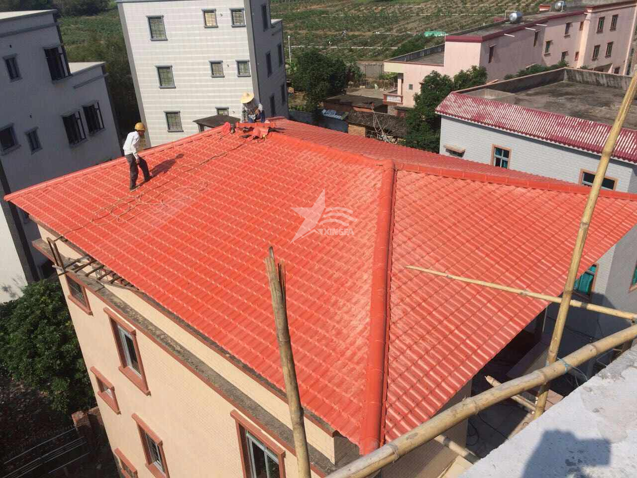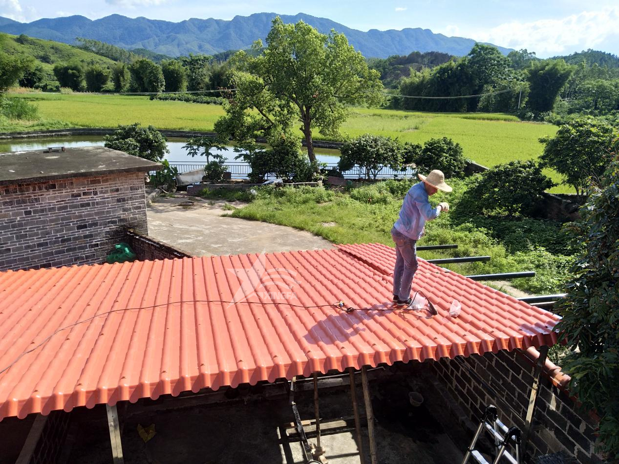 在完成防水層的鋪設(shè)后,再覆蓋保溫層和樹脂瓦,從而完成整個屋面的防水、保溫和瓦板覆蓋工作。
