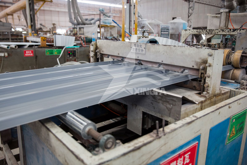 接下來,我們來看看樹脂瓦的生產過程。首先,將PVC樹脂顆粒進行預處理,包括粉碎、過篩、混合等工序,以確保原材料的質量和均勻性。然后,將預處理好的PVC樹脂顆粒與填料、顏料、增塑劑等輔助成分按照一定比例進行混合攪拌,使其充分融合。混合好的原料進入擠出機進行擠出成型,擠出出的片材寬度一般為2-3米。